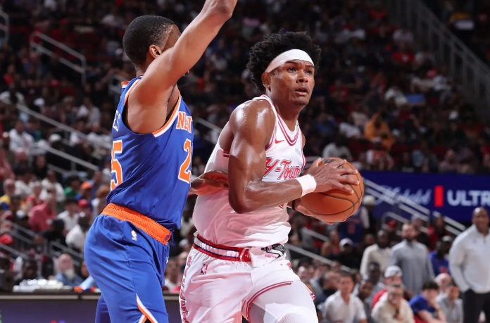 本场比赛中,火箭的先发控卫阿门-汤普森(Amen Thompson)的表现还是相当出色的。阿门全场出场38分50秒,投篮14中8,三分线外2中0,罚球2中1,得到了17分4篮板8助攻2盖帽的数据,还有1次失误,正负值为+19。汤普森在进攻端不仅有着不错的篮下终结能力,这一点也是值得肯定的,他还命中了两记长距离中投,他在进攻端的表现是超出大家预期的。除此之外,他在传球和组织方面的表现也是值得肯定的,他在防守端也有着相当不错的表现,起到了很好的效果。阿门在本场比赛中算是起到了关键的作用,在攻防两端都发挥出了自己的价值,这也是球队能够比较顺利地战胜对手的关键因素。