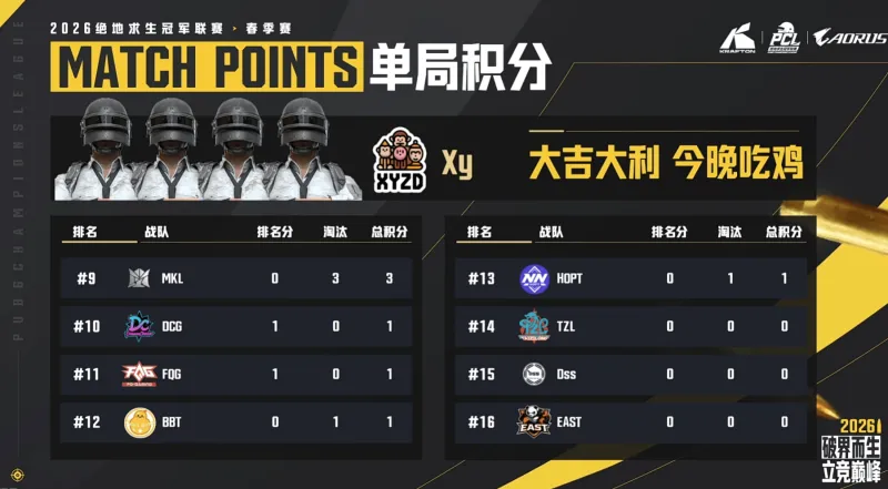 阶段6剩余6队,XY被BBT淘汰,MKL被DCG淘汰。