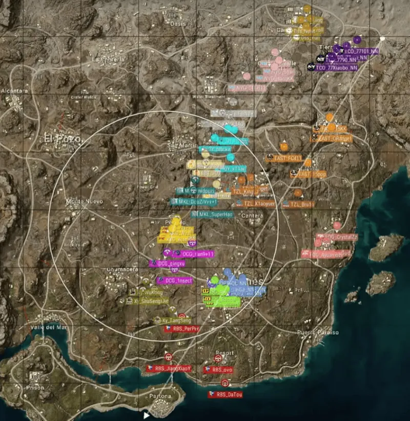 本局决赛圈位于北侧山顶附近。