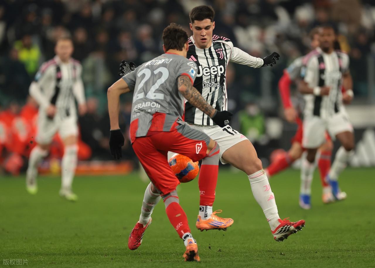 比赛从开场哨响就奠定了一边倒的基调。尤文将士带着强烈的进攻欲望,将斯帕莱蒂的战术理念展现得淋漓尽致。第6分钟,克雷莫纳后场出球失误,戴维禁区右侧小角度爆射击中立柱,早早为这场进球盛宴埋下伏笔。仅仅6分钟后,尤文的攻势就收获回报:伊尔迪兹主罚的任意球被对方后卫解围,外围的米雷蒂一脚大力远射,皮球恰好击中门前的布雷默头部折射入网,1-0的比分让主场球迷陷入狂欢。这粒带有运气成分的进球,成为了尤文全面爆发的导火索。