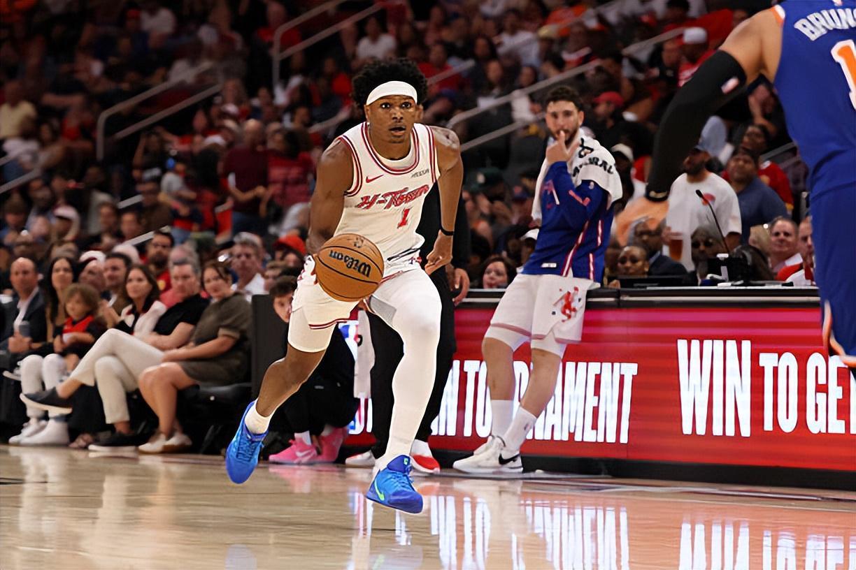 本场比赛中,火箭的先发控卫阿门-汤普森(Amen Thompson)的表现还是相当出色的。阿门全场出场38分50秒,投篮14中8,三分线外2中0,罚球2中1,得到了17分4篮板8助攻2盖帽的数据,还有1次失误,正负值为+19。汤普森在进攻端不仅有着不错的篮下终结能力,这一点也是值得肯定的,他还命中了两记长距离中投,他在进攻端的表现是超出大家预期的。除此之外,他在传球和组织方面的表现也是值得肯定的,他在防守端也有着相当不错的表现,起到了很好的效果。阿门在本场比赛中算是起到了关键的作用,在攻防两端都发挥出了自己的价值,这也是球队能够比较顺利地战胜对手的关键因素。