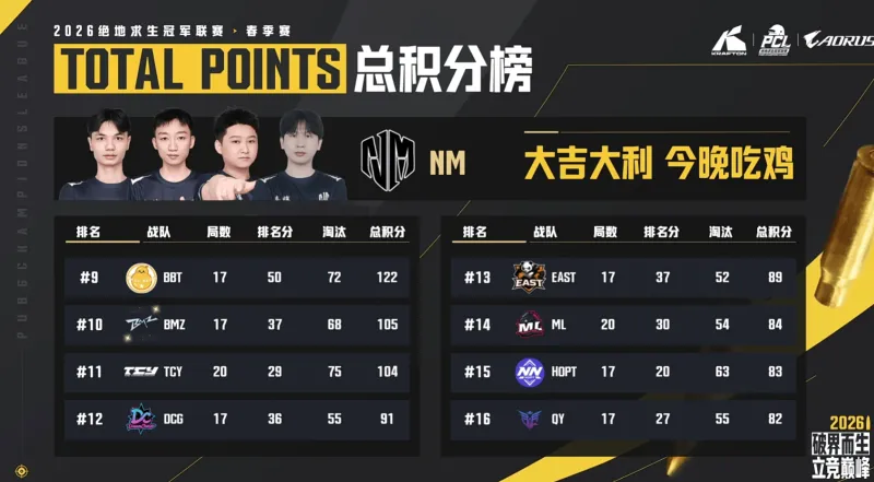 KAIYUN-PCL春季赛B阶段完赛:NM头名晋级,RBS、BBT分列二三
